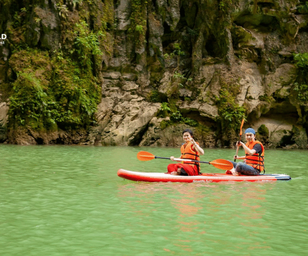 Đối với những ai muốn gần gũi hơn với thiên nhiên, chuyến đi thuyền tùy chọn trên sông Nho Quế sẽ mang đến cho bạn góc nhìn độc đáo về hẻm núi hùng vĩ từ bên dưới, một sự tương phản thanh bình với sự phấn khích của chuyến đi trên núi.