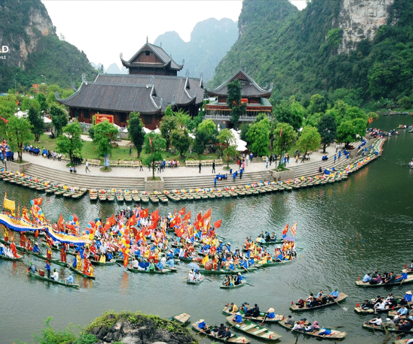 10:30 – 12:00: Tận hưởng chuyến đi thuyền yên bình ở Tràng An , lướt qua các hang động đá vôi, thung lũng ẩn giấu và dòng nước ngọc lục bảo được bao quanh bởi những khối karst ấn tượng, một Di sản Thế giới được UNESCO công nhận nổi tiếng với phong cảnh ngoạn mục.